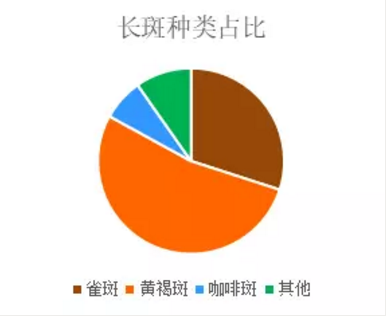 有数据显示: 近80%的女性都有色斑困扰,色斑种类繁多黄褐斑占比约53%,雀斑约30%,复合类色斑约9.73%,且覆盖的年龄较广,18-25岁的患者约占17.84%,25-35岁的患者约占21.44% ,35-45岁的患者约占24.59%。